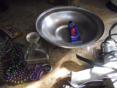 Since I knew that I would be painting this entire thing with a coat of Heirloom White it didn’t matter to me that the beads were purple, plastic and of the Mardi Gras variety.